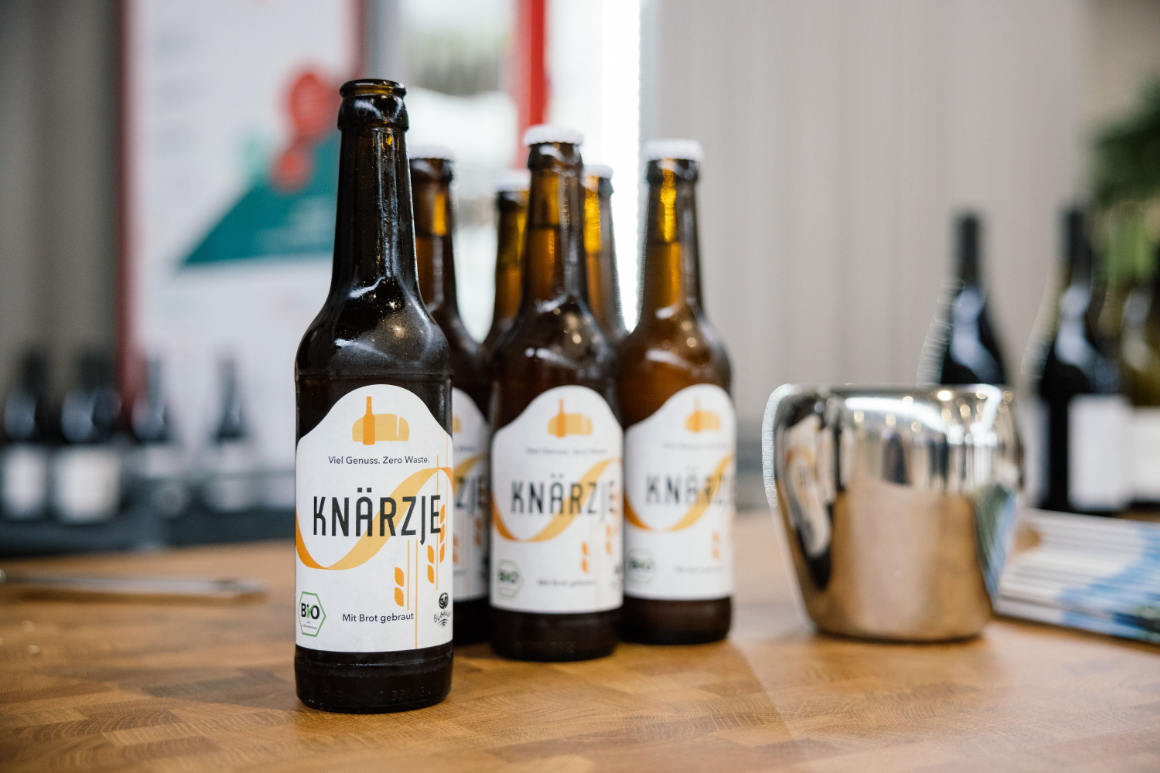Zwei Millionen Backwaren werden jährlich weggeworfen. Knärzje aus Frankfurt rettet Brot aus Biobäckereien vor der Tonne und fügt pro Flasche etwa eine Scheibe dem klimaneutralen Brauprozess hinzu. Gleichzeitig verbraucht die Herstellung pro Flasche rund 23 Liter weniger Wasser als bei konventionellen Bieren. Und lecker ist es auch!